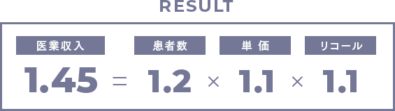 医業収入 = 患者数 x 単価 x リコール