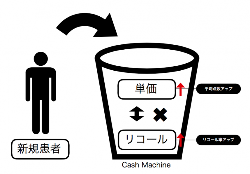 単価アップ→リコール率アップ→患者数アップ